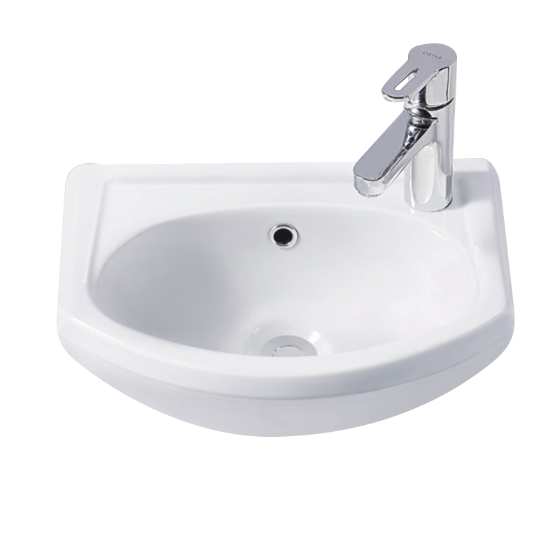 Modern Semi Recessed Ceramic Basin with Overflow Mid Sized