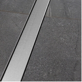 This tile-over shower base is available in a variety of different linear grate options including brushed aluminium, matte black or tile-insert.