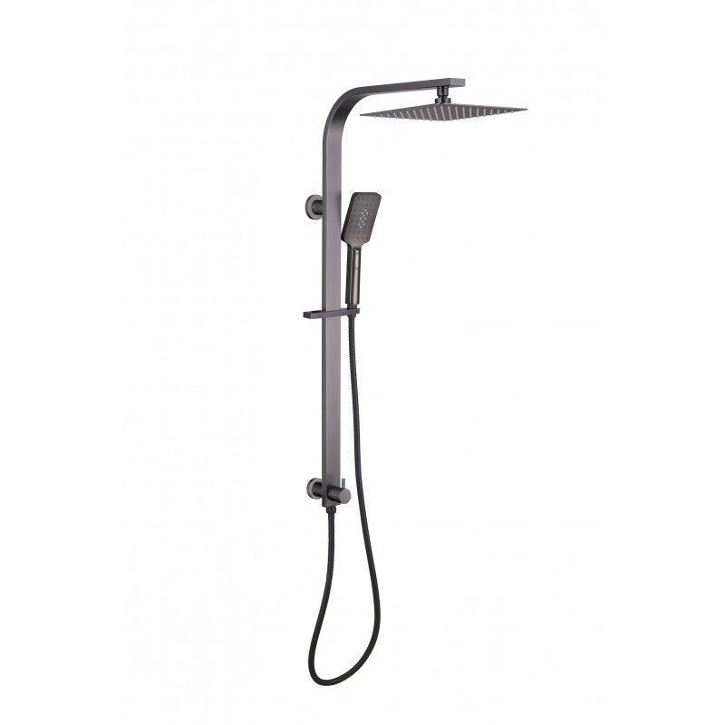Brushed Gun Metal Dual Hand and Rain Shower On Rail Combination CubeDesign 250mm Head