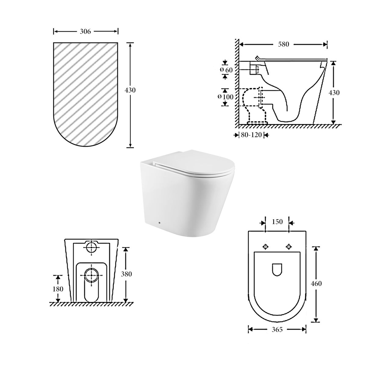 - Full back to wall pan with completely concealed cistern