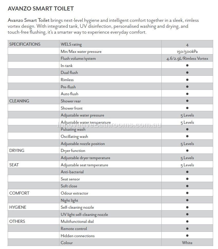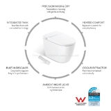 Avanzo SMART Toilet (Bidet) Wall Faced RIMLESS TORNADO Suite-Integrated Tank-Heated-Drying-Odour Extraction-Light-Auto Flush