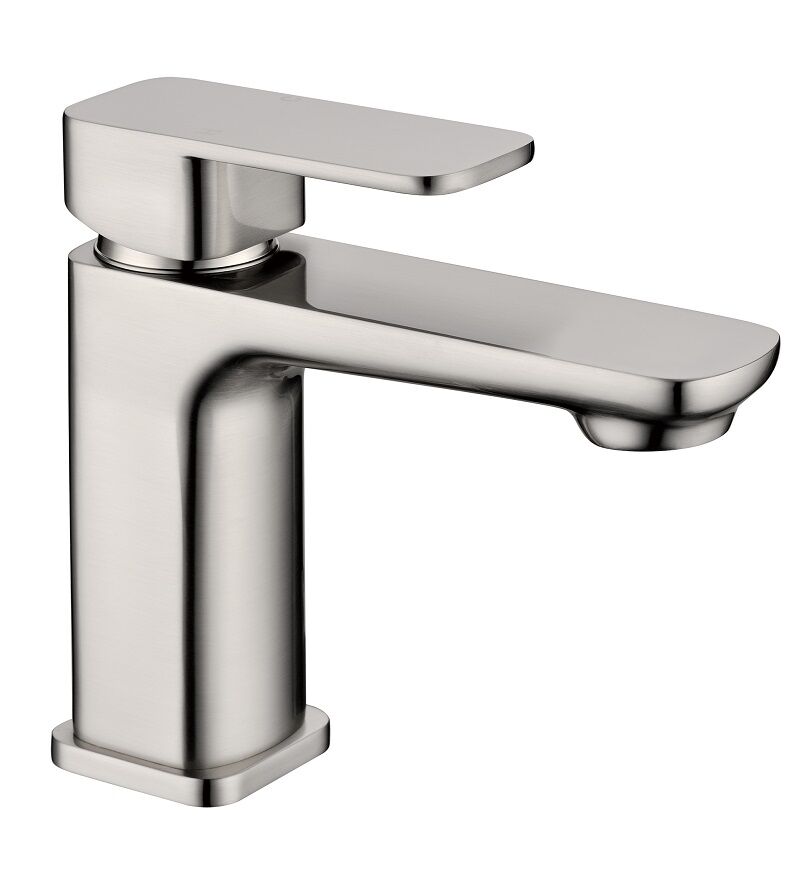 Brushed Nickel Cube Radius Edge Basin Mixer H/Duty Brass Satin Finish Swivel Ceramic Disk WELS 4*